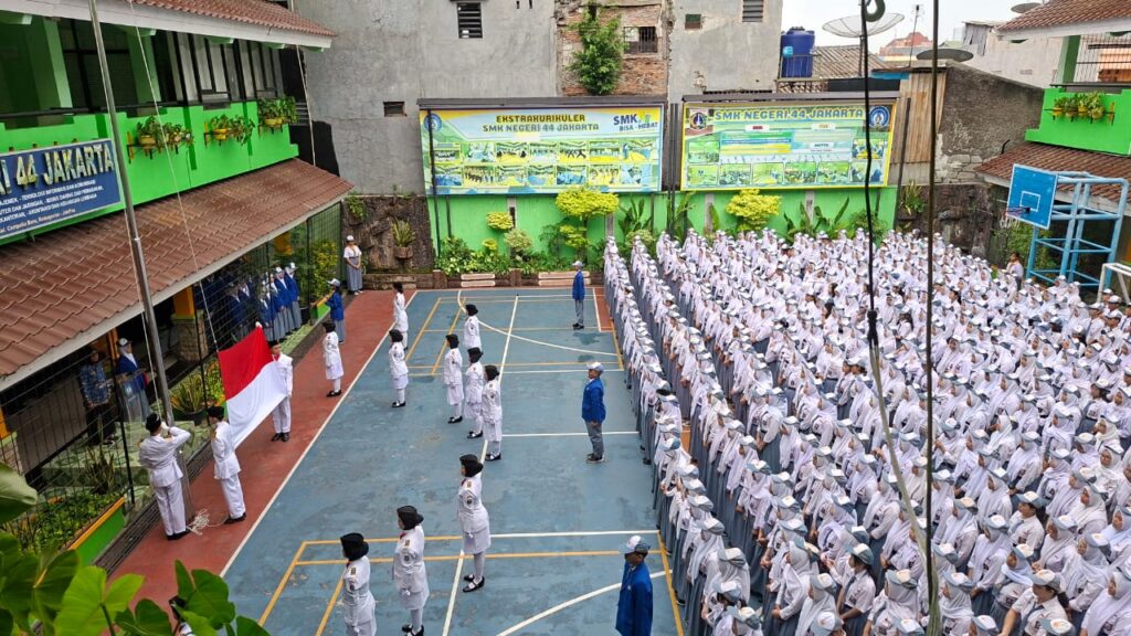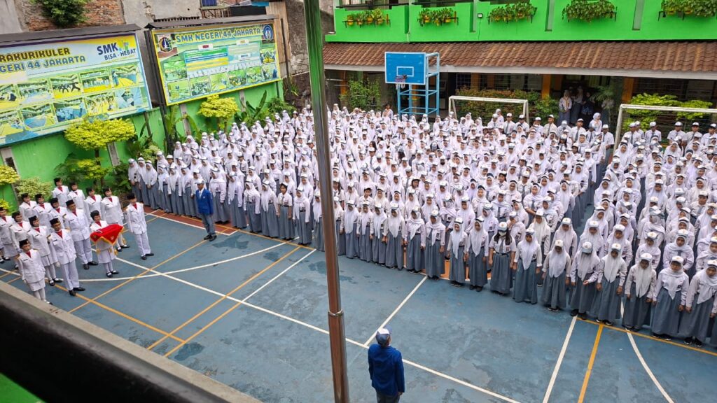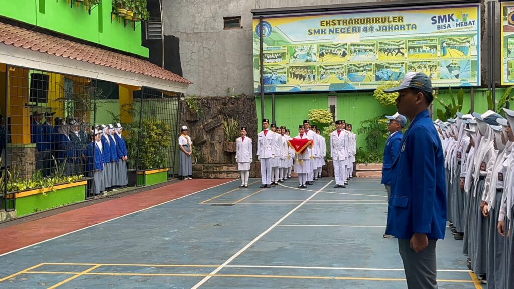 Pada hari Senin, 28 Oktober 2025, SMKN 44 Jakarta melaksanakan upacara bendera dalam rangka memperingati Hari Sumpah Pemuda yang ke-97. Seluruh siswa, guru, dan staf sekolah mengikuti kegiatan ini dengan penuh semangat dan khidmat. Upacara dimulai pukul 07.00 di lapangan sekolah, diawali dengan laporan pemimpin upacara dan pengibaran bendera Merah Putih yang diiringi lagu kebangsaan Indonesia Raya.