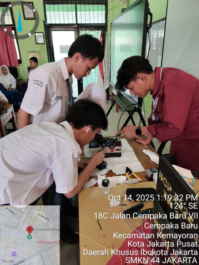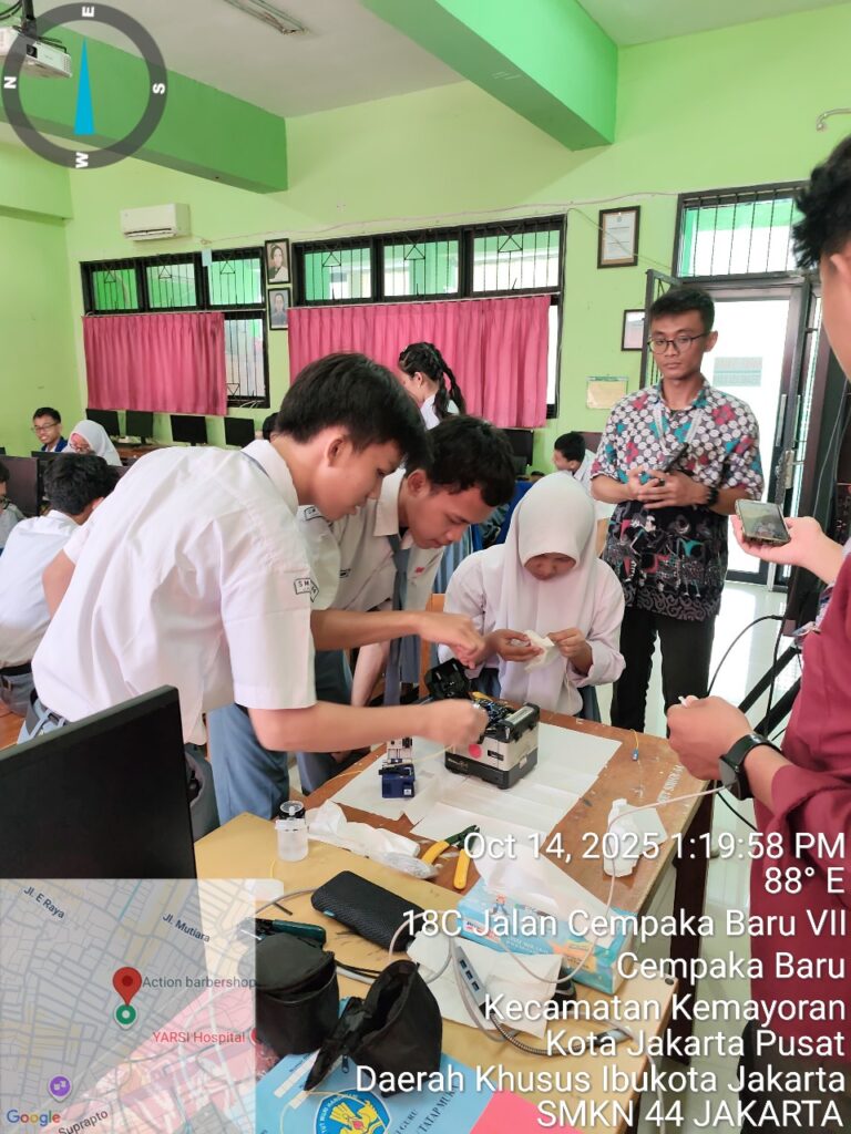 Pada hari Selasa, 14 Oktober 2025, jurusan Teknik Komputer dan Jaringan (TKJ) SMKN 44 Jakarta melaksanakan kegiatan Pelatihan Fiber Optic yang bekerja sama dengan PT AMS (Anugerah Mitra Sejati). Kegiatan ini berlangsung di laboratorium komputer (TKJ) sekolah.
