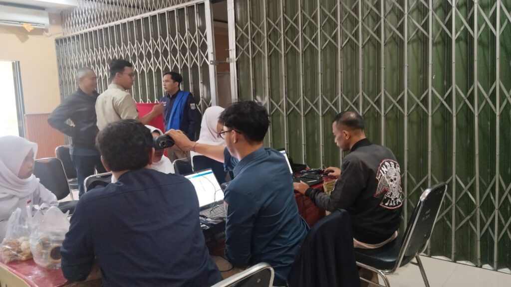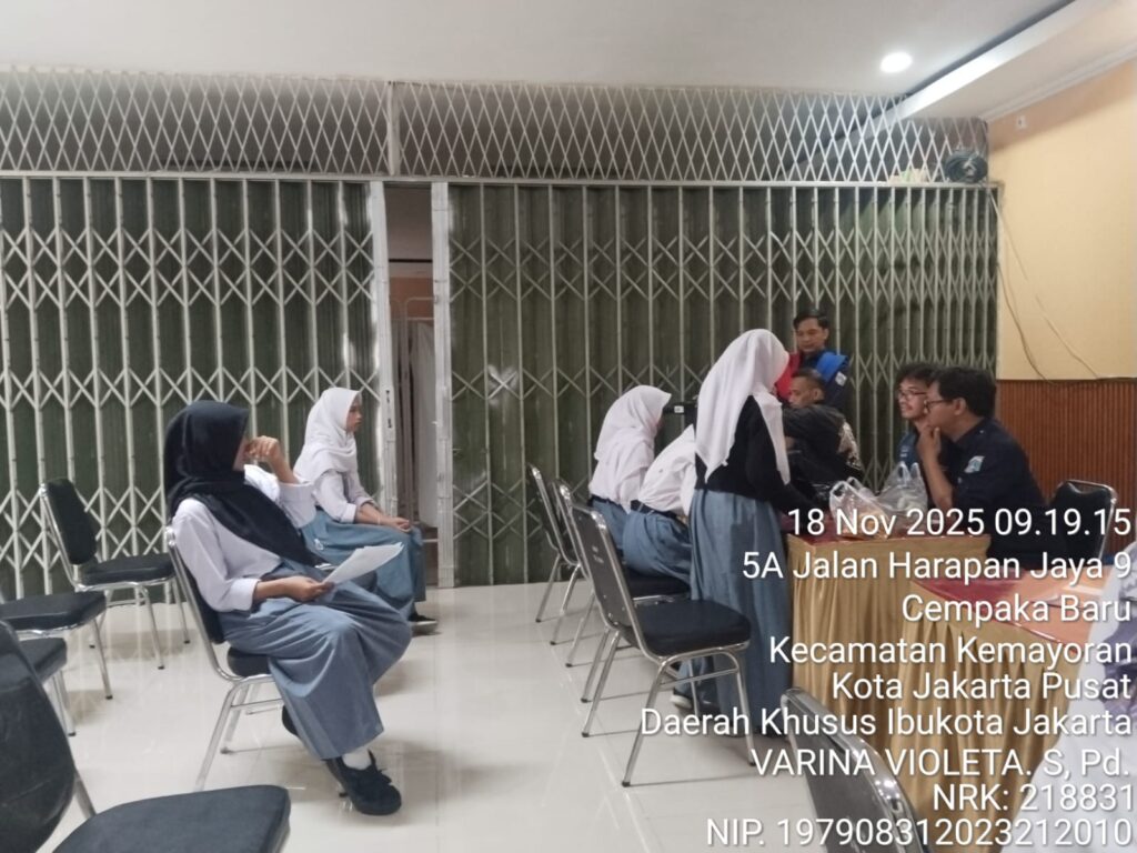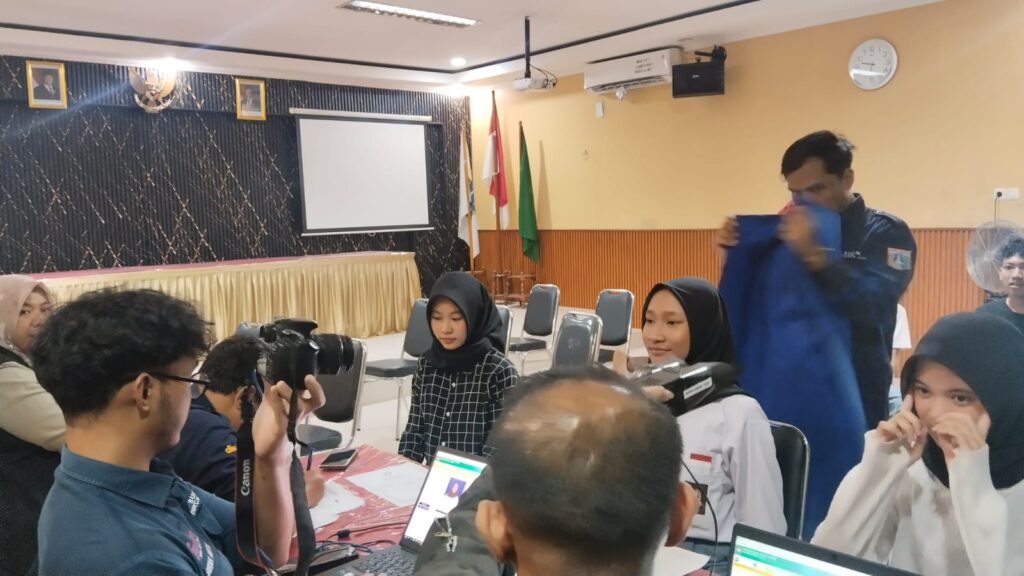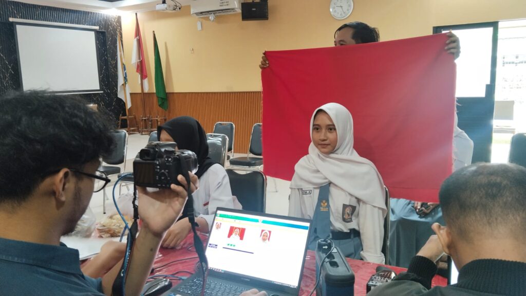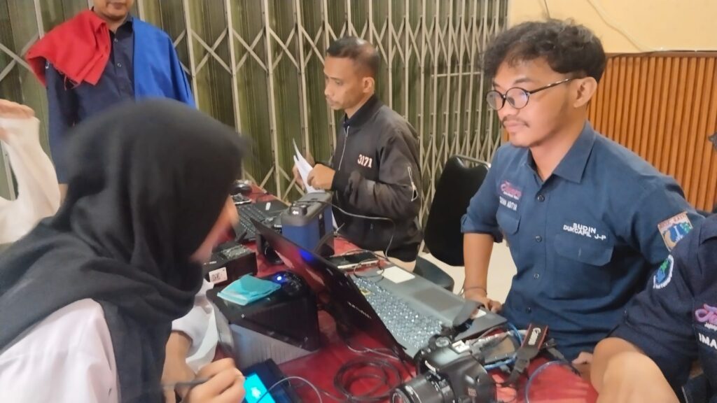Di SMKN 44 Jakarta, kegiatan perekaman foto KTP untuk seluruh murid kelas X dan XI berlangsung dengan lancar dan tertib di aula sekolah pada pagi hari yang cerah. Dukcapil Kota Jakarta Pusat hadir dengan tim petugas yang terdiri dari beberapa orang, lengkap dengan peralatan canggih seperti kamera digital dan komputer untuk memproses data. Murid-murid antusias mengikuti proses ini, dimulai dari pendaftaran data pribadi seperti nama, tanggal lahir, dan alamat, diikuti dengan sesi pemotretan di depan layar hijau untuk mendapatkan foto yang sesuai standar KTP. Guru-guru dan staf sekolah turut membantu mengatur antrian, memastikan setiap siswa mendapat giliran tanpa ada keterlambatan.